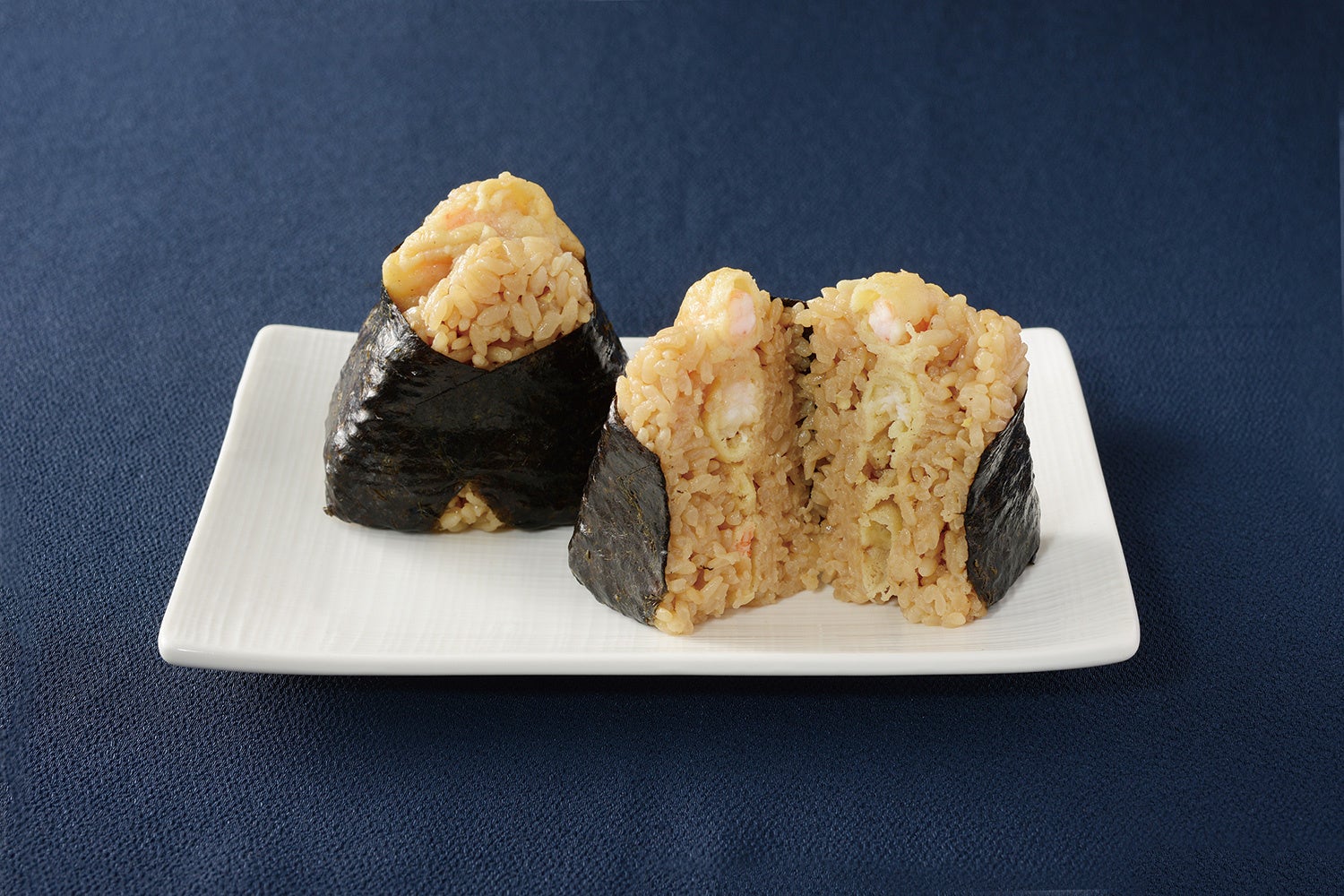海老天に昆布つゆベースにホワイトペッパーをきかせたたれをあわせ、白だしや醤油などを加えて炊いて甘酢生姜のみじん切りを加えたごはんで握りました。ごま油の芳ばしい香りと甘酢生姜のさっぱりとしたアクセントを楽しめる天むすです。